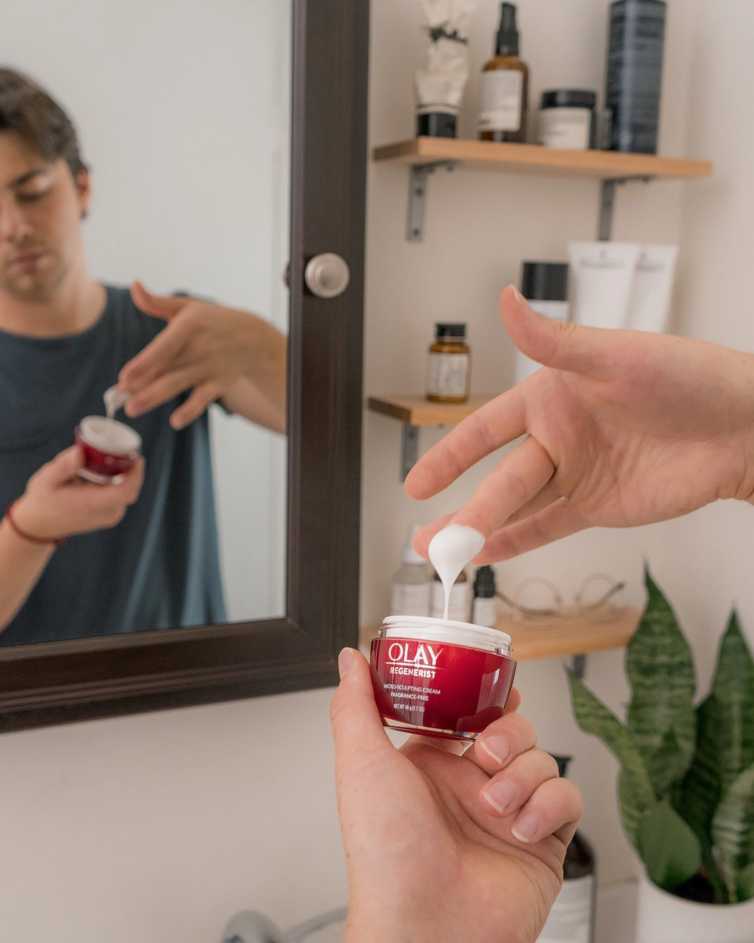 We’re excited to partner with Olay and introduce you to, if you haven’t seen it out and about, their Red Jar products. It has been around for years and we are frankly shocked it’s never found its way into our medicine cabinets or our suitcases.